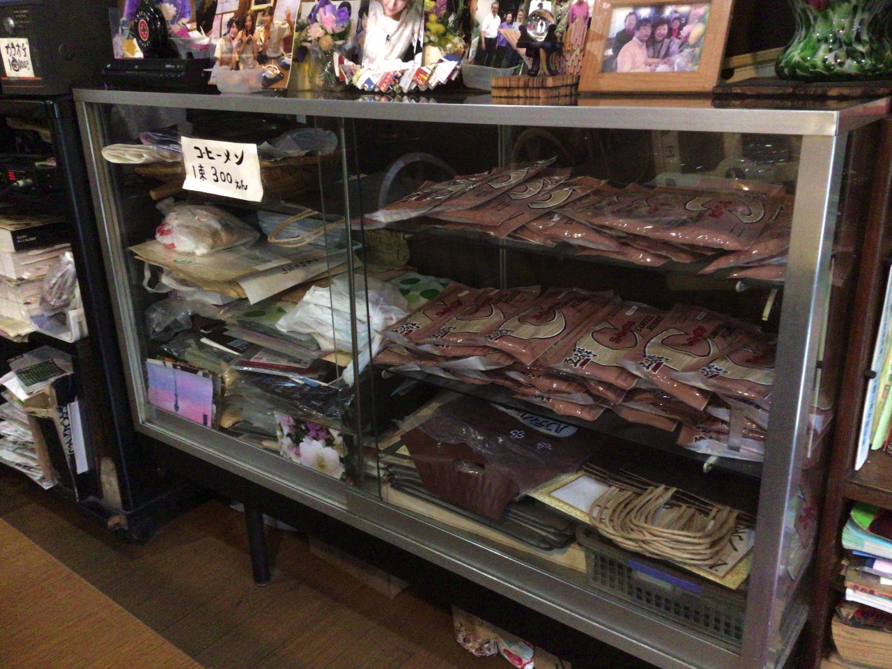 以前テレビでコーヒーラーメンの紹介があり出動してみました。京成お花茶屋駅から近いですが、細い路地沿いにあり少しわかり難いと思います。入店してびっくり、普通の喫茶と思いきや1曲100円のカラオケをしているシニアがいました。店主さんがごめんね、今日はカラオケデーでとフォローしてくれて、いいえいいえ全然気にしませんよとお伝えしました。。コーヒーラーメンホット700円 コーヒーの味が麺 スープともしっかり付いていて、面白いラーメンでした。具にアイスやバナナやコーヒー豆がそのまま入ったタマゴ等がありました。