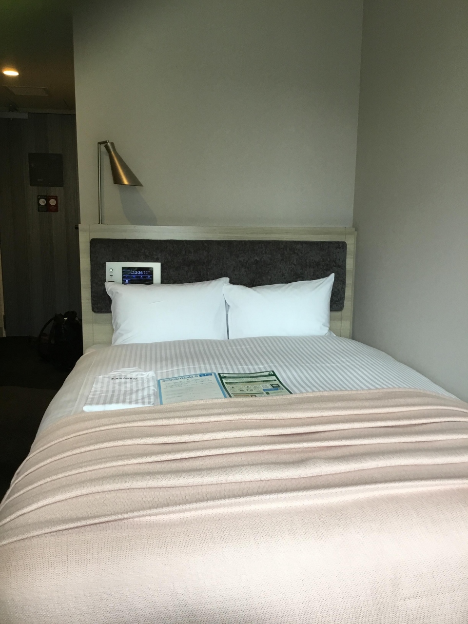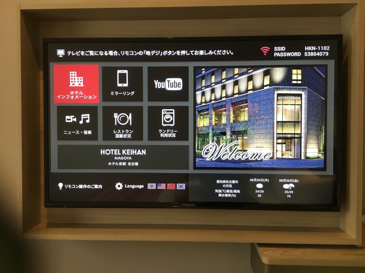 チェックイン前のお昼に荷物を預けに行った所、お部屋がご用意出来てますと早くチェックインさせて頂きました。11階の1102号室でしたが、室内の窓からはテレビ搭が見えて眺望がすばらしかったです。部屋は一般のビジネスホテルよりは少しグレードが高い感じでした。ベッドの硬さや沈み具合は丁度良く、とても寝心地が良かったです。また泊まりたいと思います。