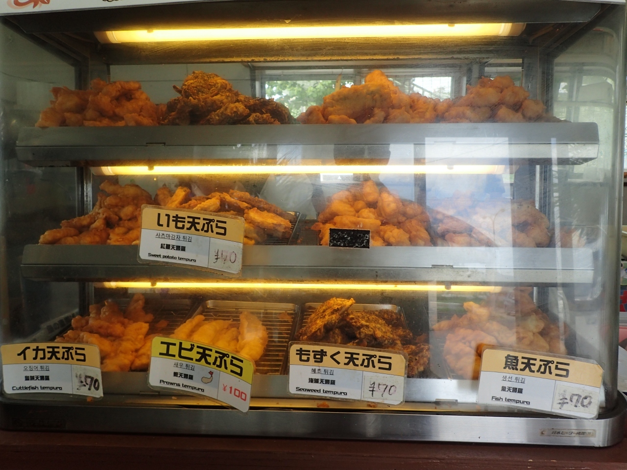 刺身等の定食が頂ける食堂と、テイクアウトできる天ぷら屋さんが並んであります。先ずは食堂に入り、刺身定食1,000円を頂きました。沖縄に来ないといないお魚の刺身が多数入ってました。とても新鮮で美味しかったです。食後は、隣にある天ぷら屋さんへ行きどれでも1つ70円の天ぷらを買ってつまみ食いしました。