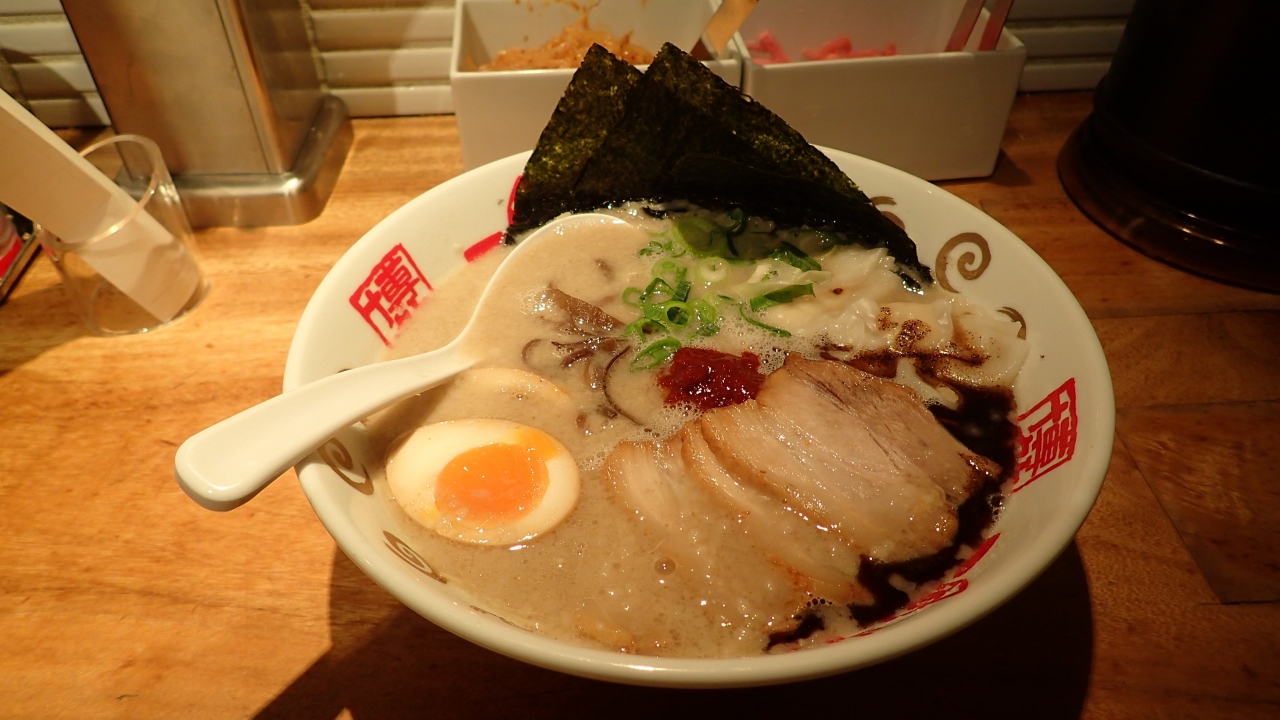 力の源ホールディングスの株を持っていて10%割引株主優待が家に届き、博多旅行の際、せっかくだから本店に行き利用しました。本店は創業当時のメニューがあり元祖赤丸新味 1,190円を頂きました。ワンタンが本店しか入っていないとか聞きました。本店ですが建物は新しいので歴史的なものは感じませんでした。