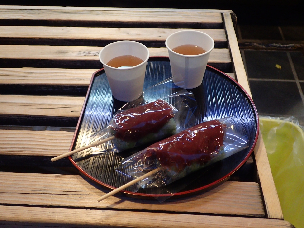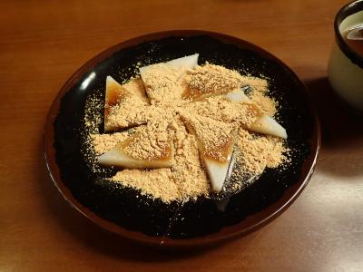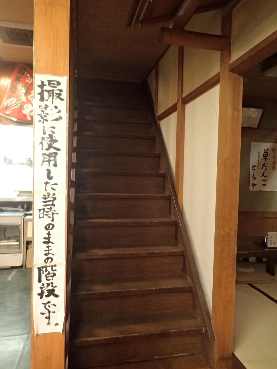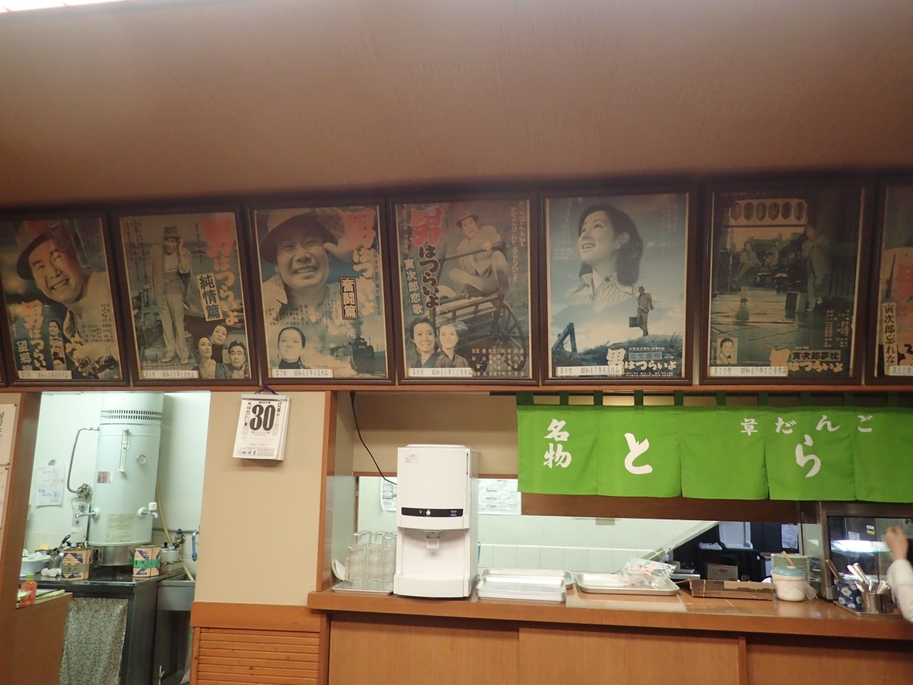 年末詣に帝釈天へ行き、帰りに立ち寄りました。草だんごが既に売切れていたので、店内でくずもち520円税込を頂きました。2人で一皿だけにしましたが、2人分小皿とフォークを用意して下さいました。お茶も出して頂けます。店内の壁には歴代の寅さん映画のポスターが飾られており、店舗は新しくなってますが、昔映画で使われ階段が残され再設置されている様です。