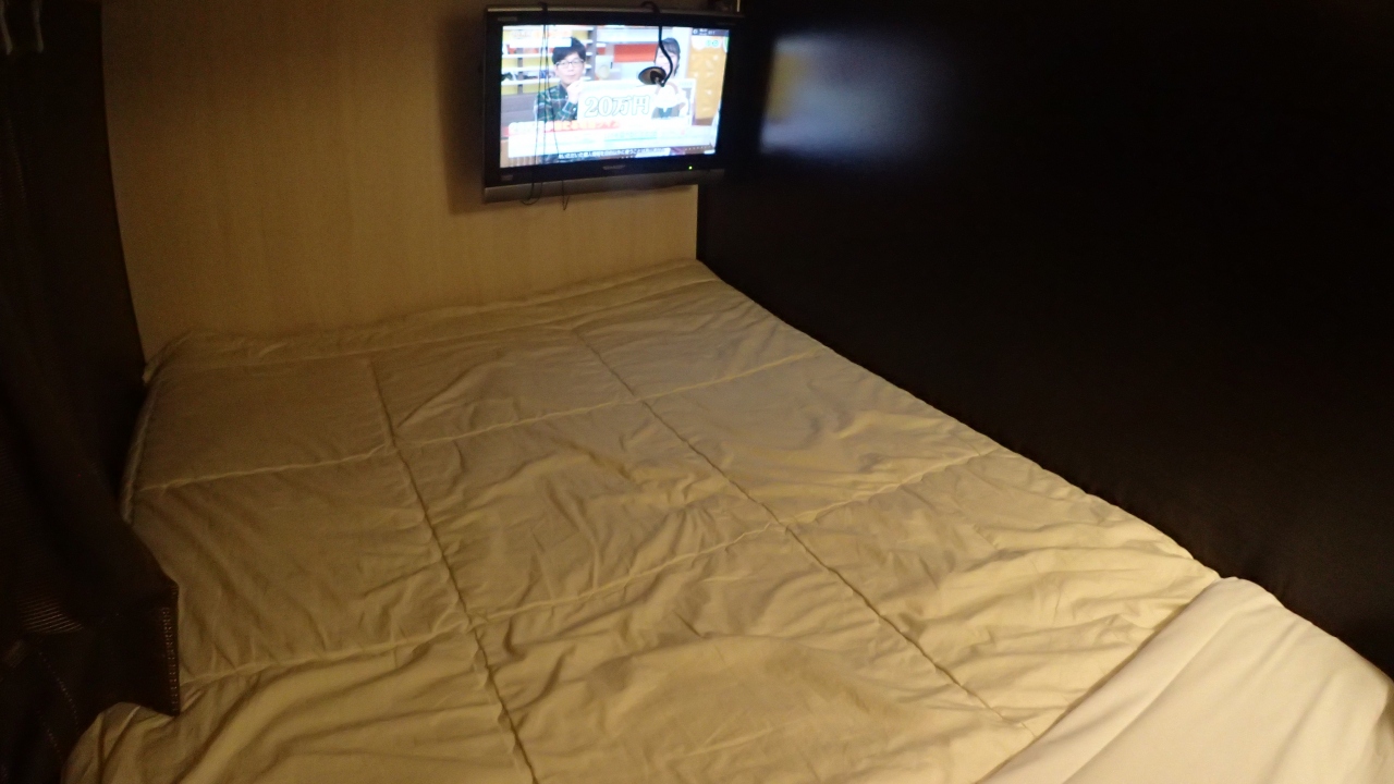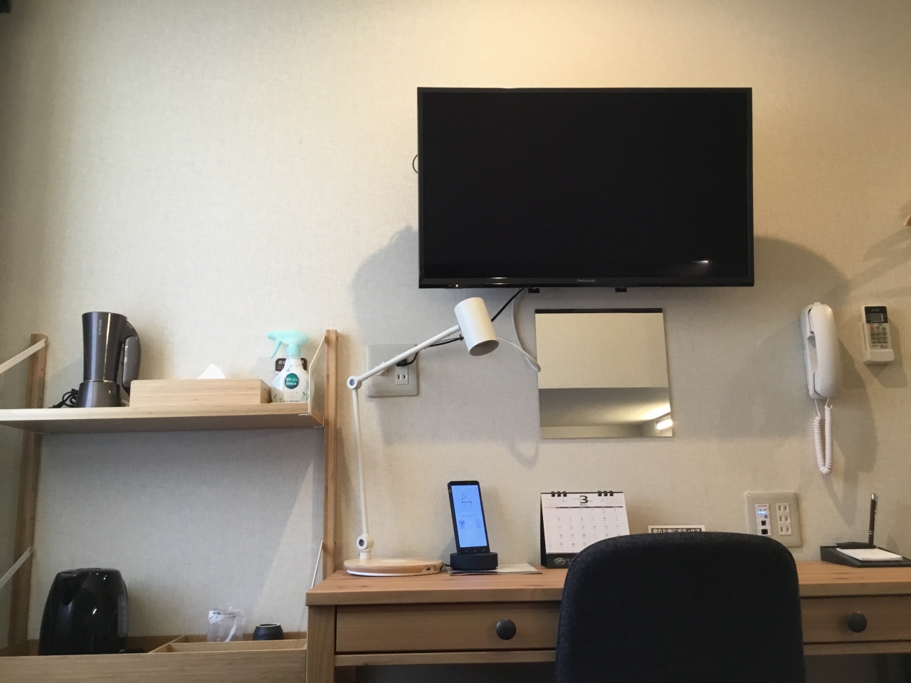 個室内にはテレビやコンセントがあります。wi-fiはサクサクに使えました。