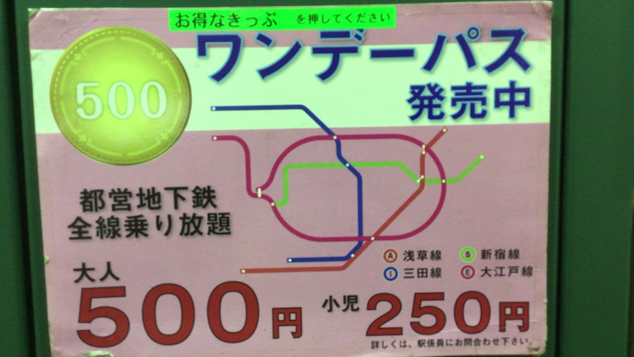 年4回実施されている都営地下鉄土日祭日500円で乗り放題になるワンデイパスを