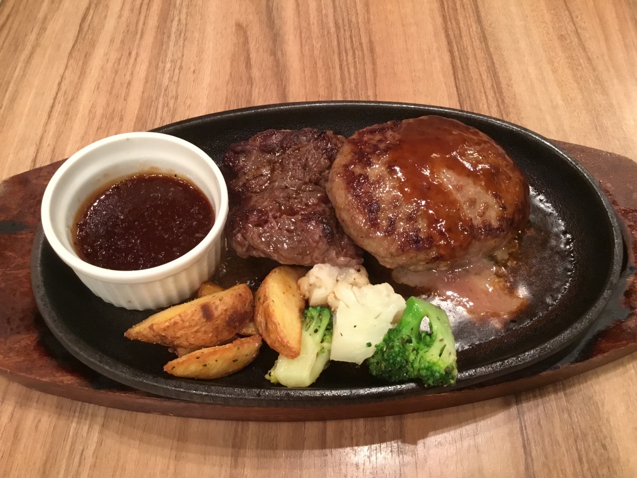 ハンバーグとジャクソンステーキのセットにしました。ジャクソンステーキは少し