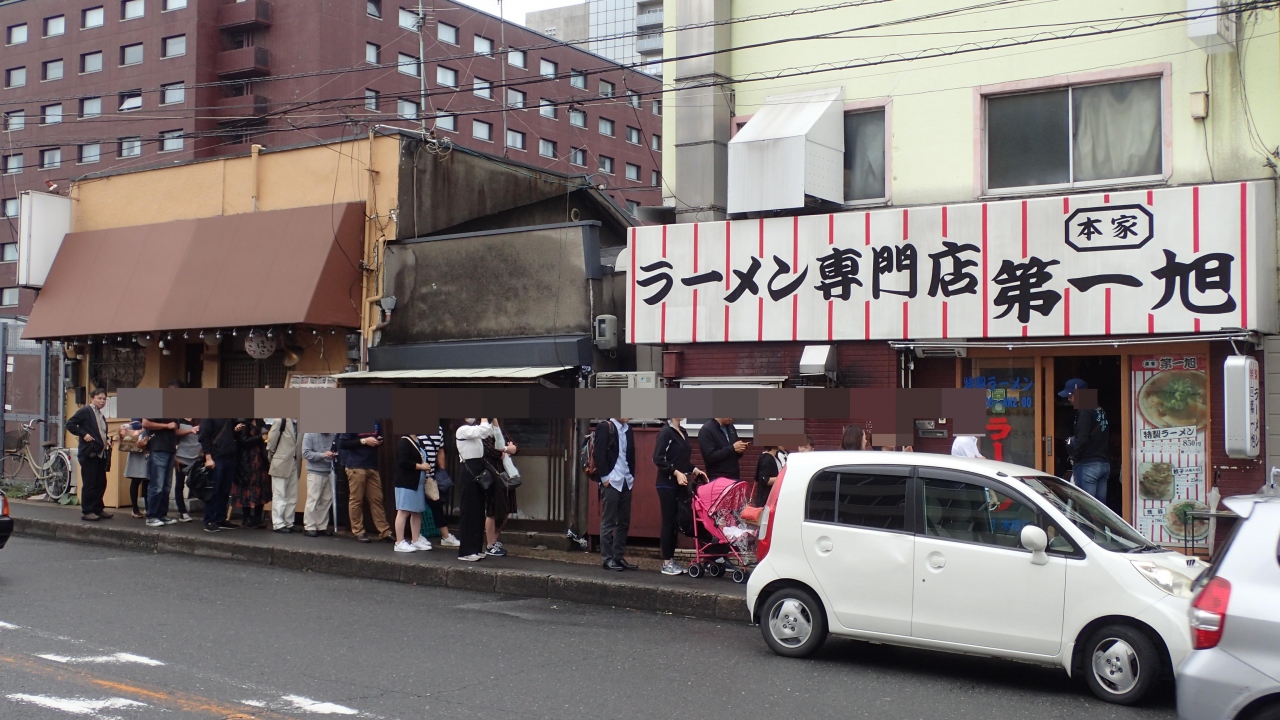 隣にも有名なラーメン店があり「本家 第一旭 たかばし本店」は外で並んでいる人がいました。