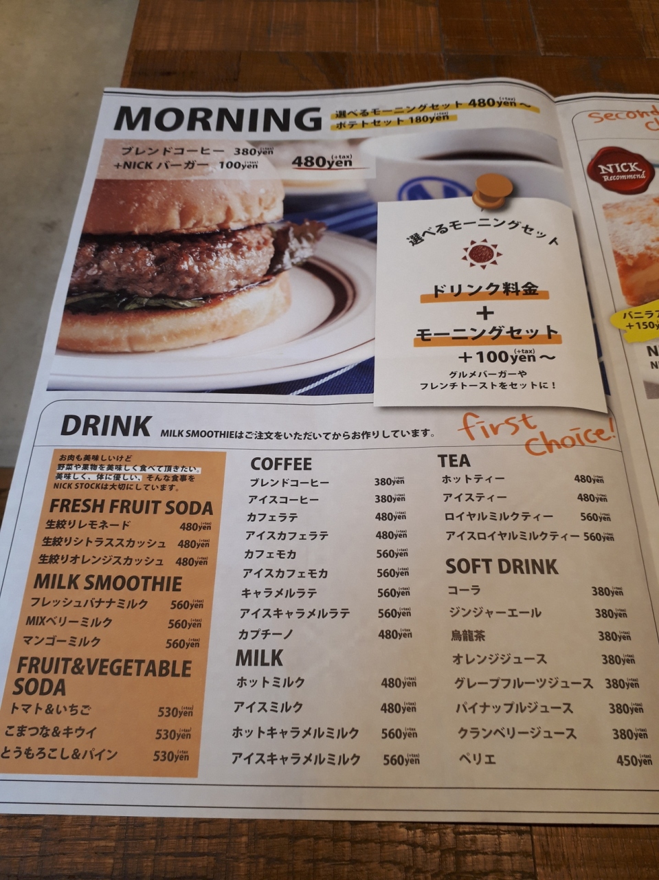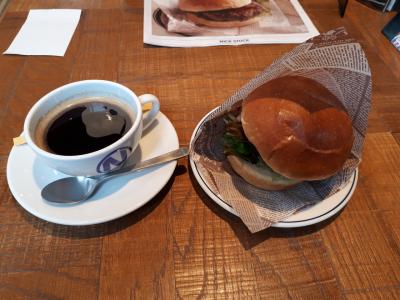 ということで、ホットコーヒー380円 NICKバーガー100円 合計480円 税込518円を