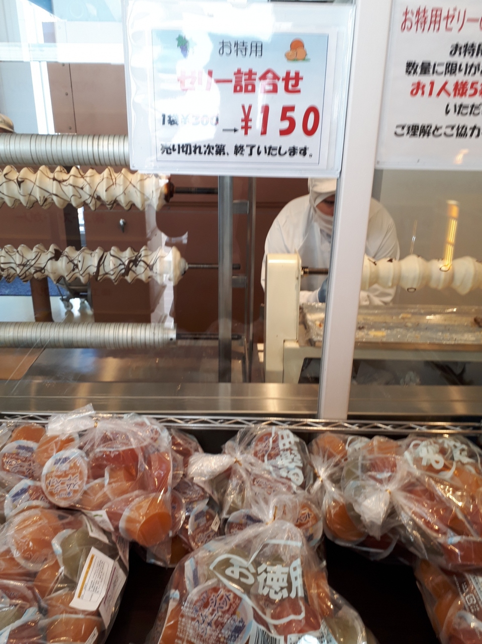 人気があります。デパート等で売られている高級なものではありませんが、そこそこ美味しいです。その他、スポンジケーキやゼリー等も販売されています。