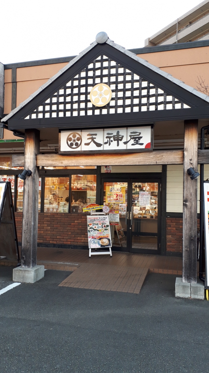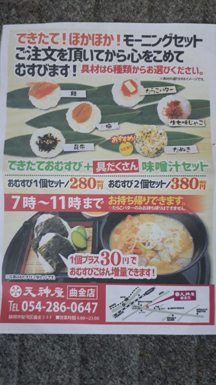 天神屋でモーニングやていますと看板見るの初めて、曲金店限定のメニューのようです。