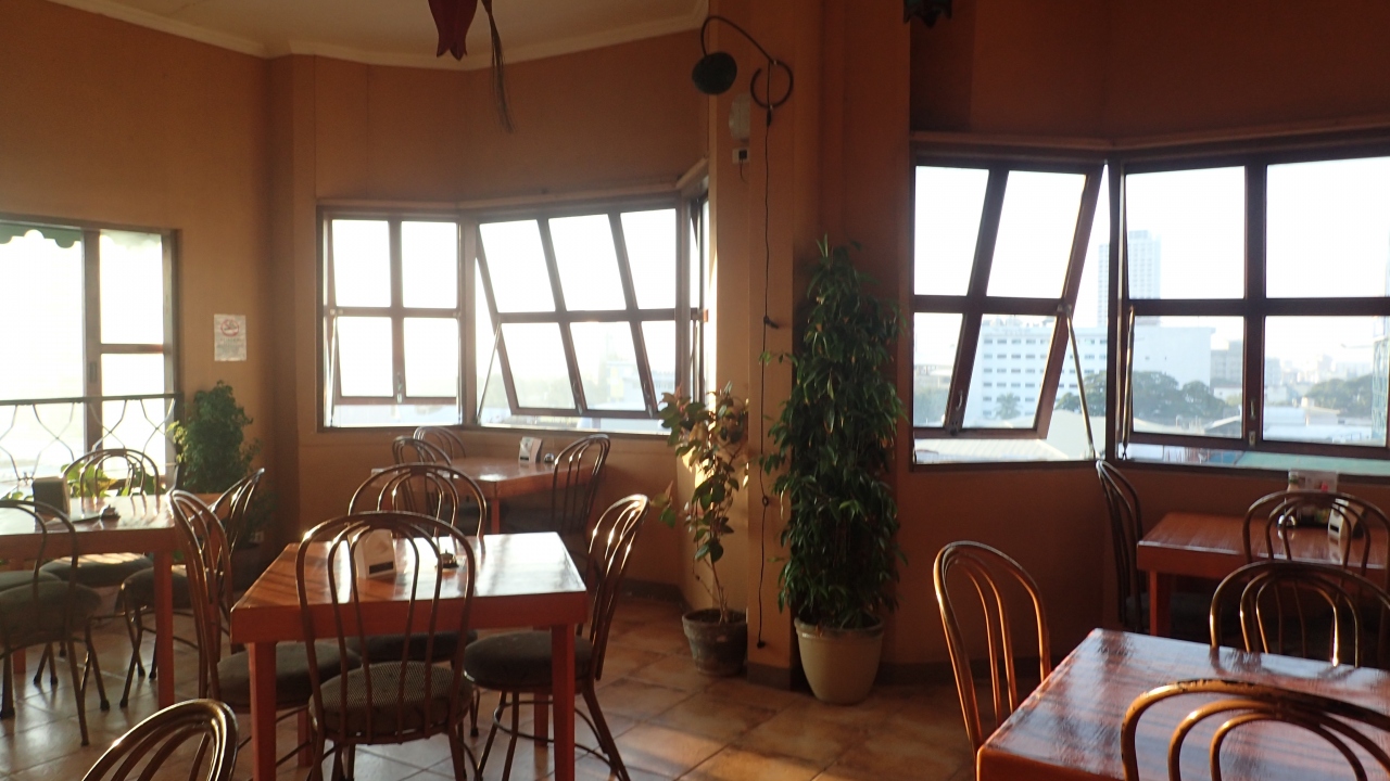 2階のレストランは、やや高めでした。ドリンクを頼まなくても水がでてきます。