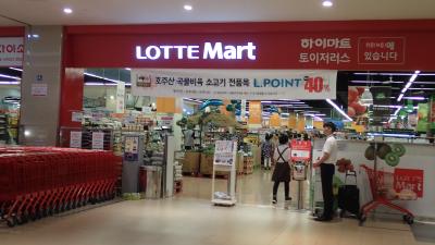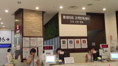 旅行荷物をロッテマートのカウンターで預かってくれると確認し、