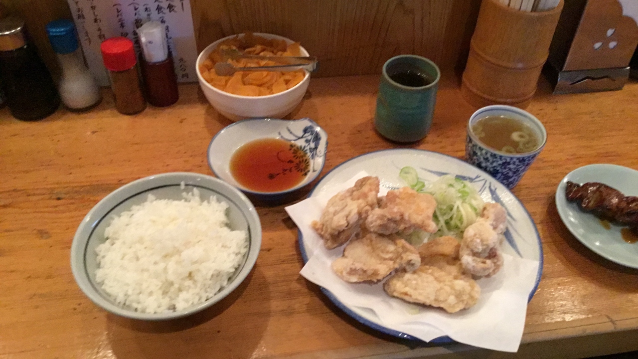 から揚げ定食980円税込 単品レバー220円税込 2本をオーダーしました。