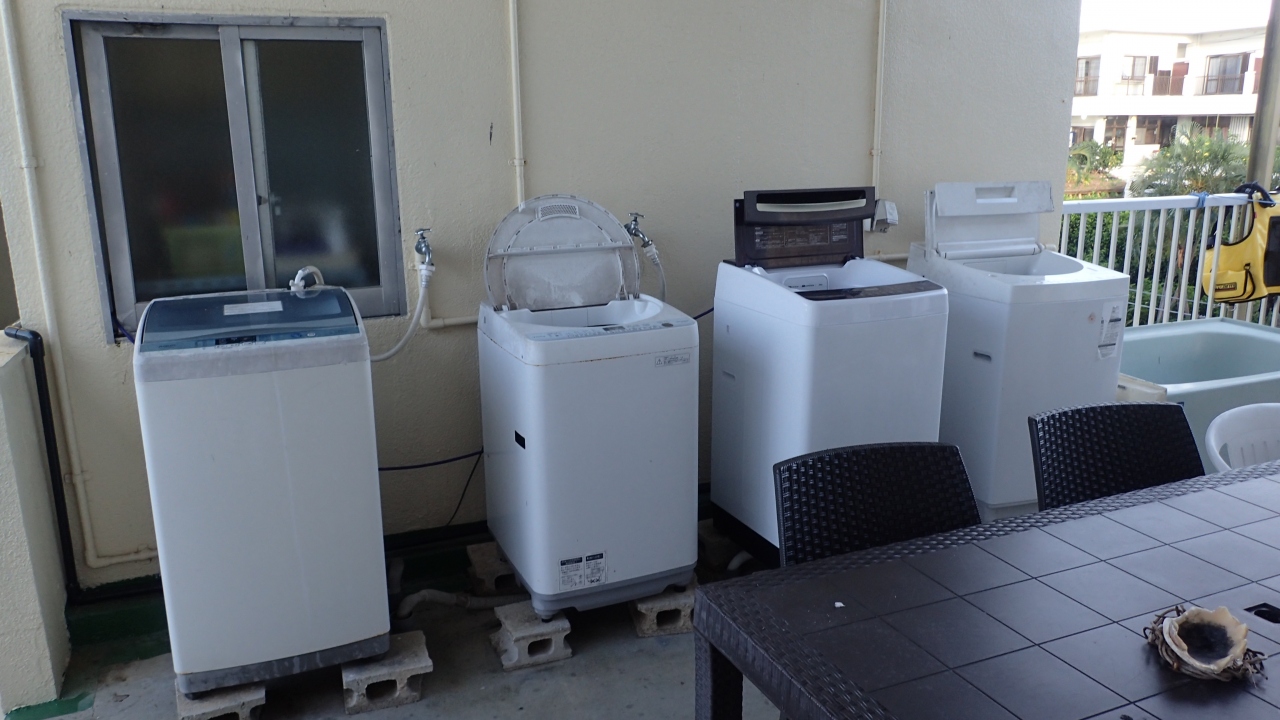 ダイビング目的のお客さんが多く、機材洗い場や機材干し場が充実しています。