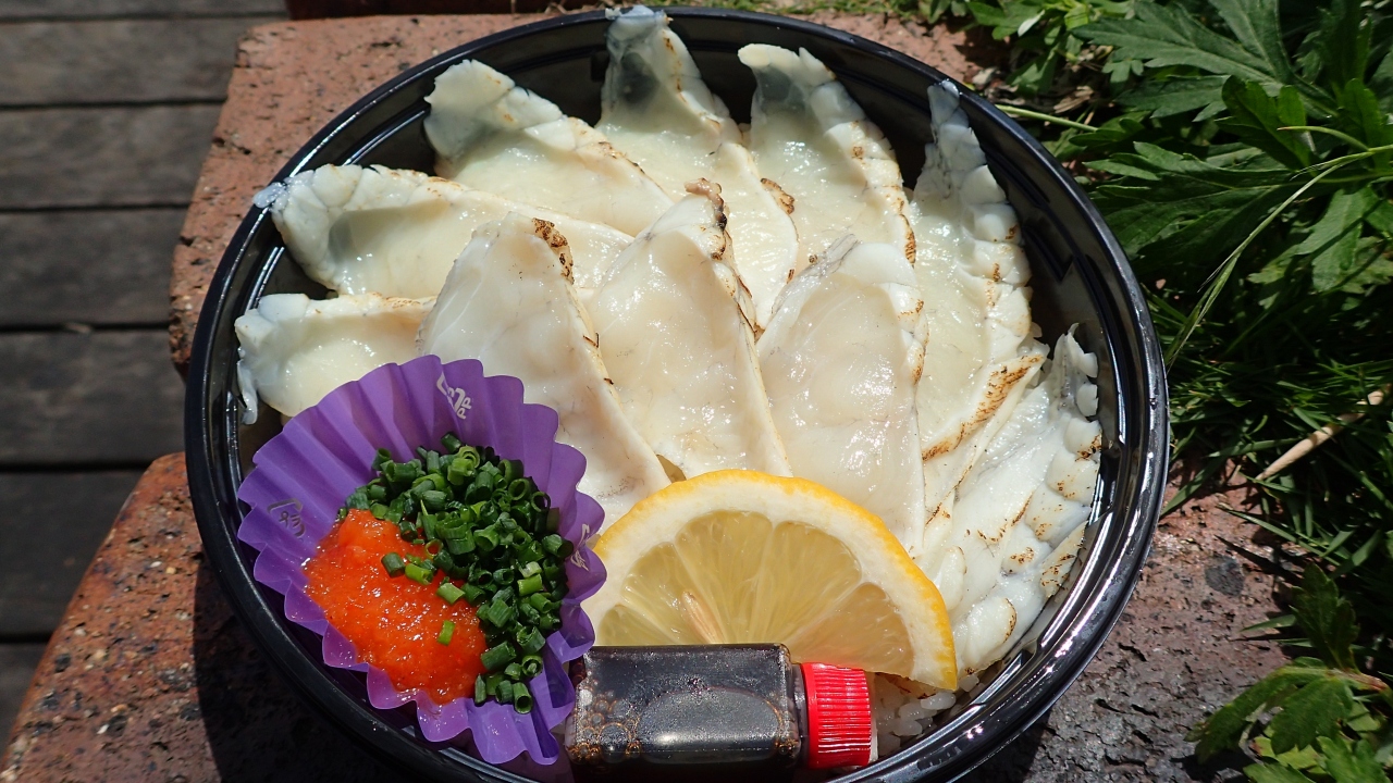日曜日の午後2時半頃でしたが、徐々に店じまいの時間になっていて、閉店間際の割引タイムでお安くフグ等を買う事が出来ました。食べる場所がなく、外の芝生の所で皆さん食べられる様でした。テーブル等が無く海は眺められますが、適当な場所で食べるのは少し残念でした。- 旅行時期