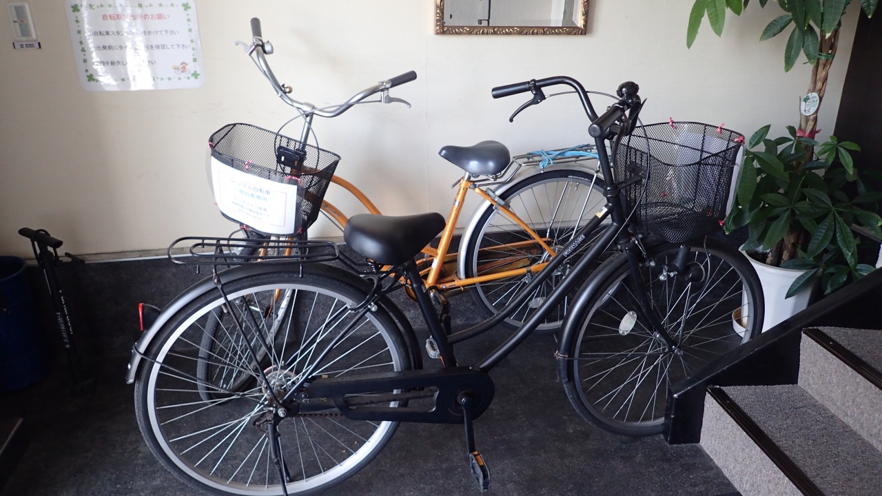 ロビーにはたくさんの本があり、貸出用自転車も多くありました。