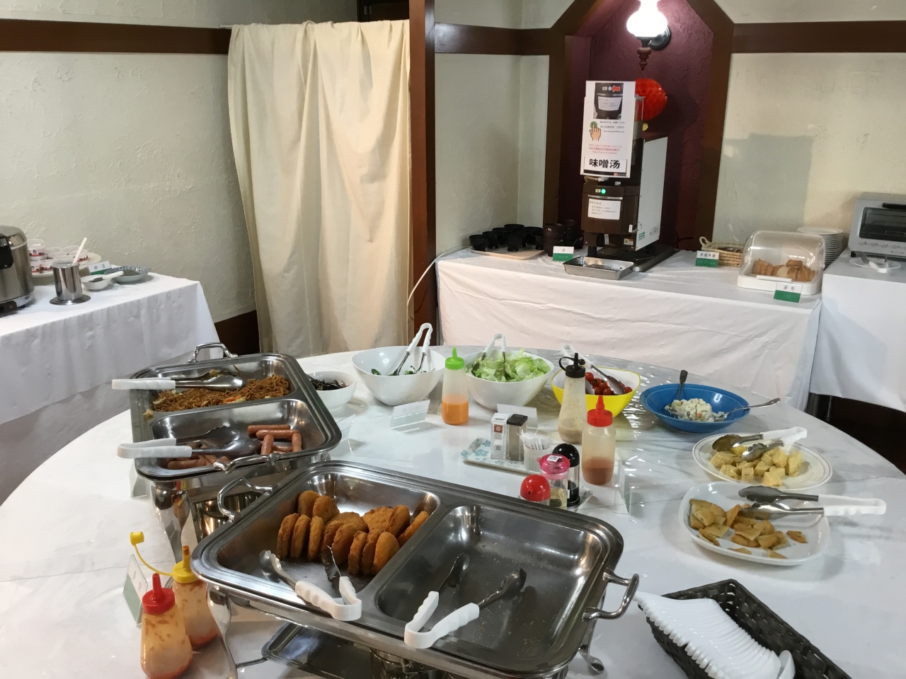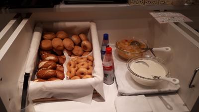 夜8時過ぎにチェックインしたが、無料のソフトドリンク・アルコールサービスは夜8時までのサービスになっていたので、利用できませんでした。このサービスを利用したい方は、早めにチェックインするのが良いと思います。ホテル自体はとても古そうでしたが、完全リフォームではなく所々している印象をうけました。朝食は無料でしたが、質素な内容でした。