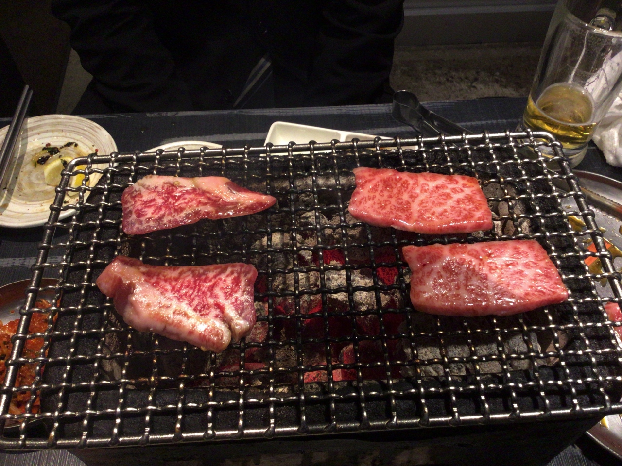 JR浅草橋駅西口出口でて直ぐ目の前にありとても便利です。炭火で焼く和牛焼肉はとても美味しかったです。本日の盛合せ4種200gは、部位によりとても味や柔らかさが違い楽しむことができました。サーロイン焼きすきは、とても長いお肉を焼きご飯にまいて生たまごにからめて食べましたがとても歯ごたえがあり美味しかったです。