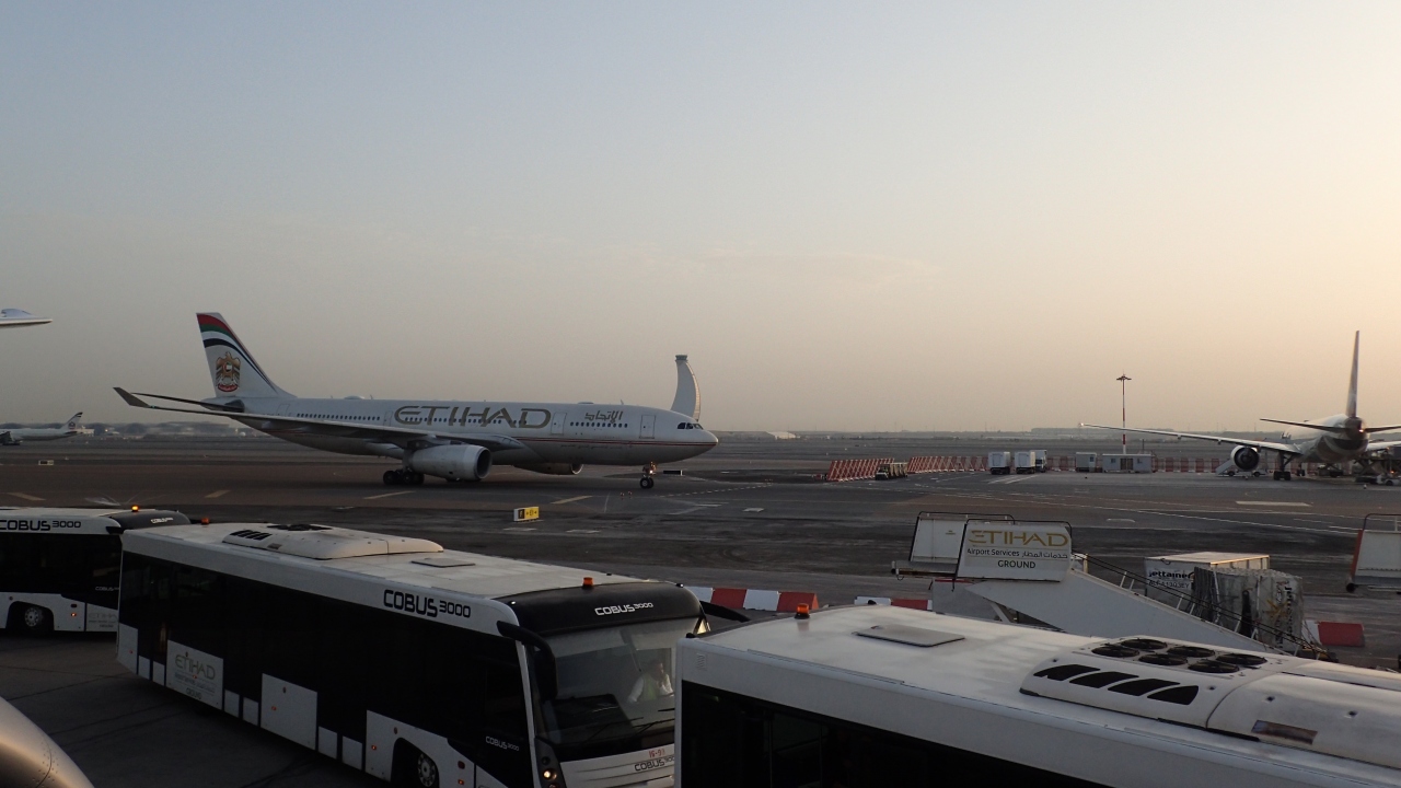 エディバド航空のハブ空港でアブダビに来るのを目的としていない利用者が多いのか空港内のベンチがほぼ人で埋まっていて、ベンチを確保するのが大変でした。床に座っている方もいました。ベンチに座れなかったので、空港内のカフェでコーヒーをのみ待ち時間を過ごしました。