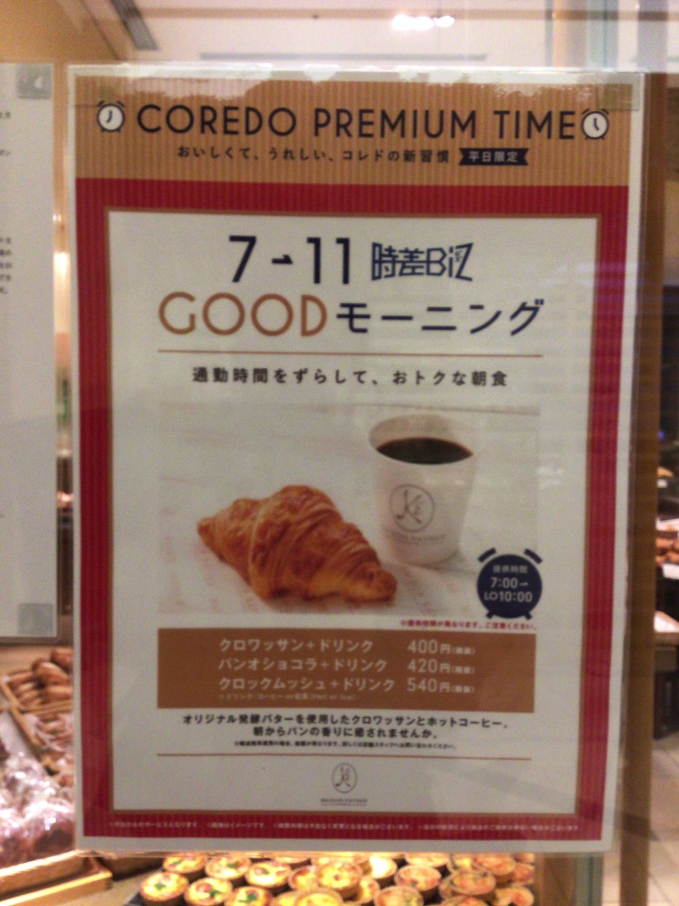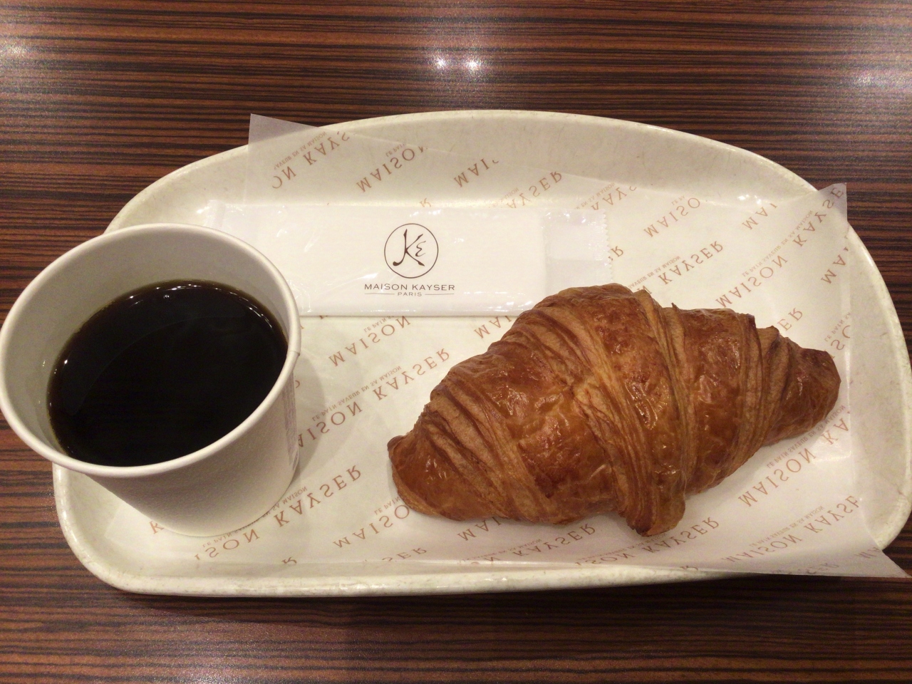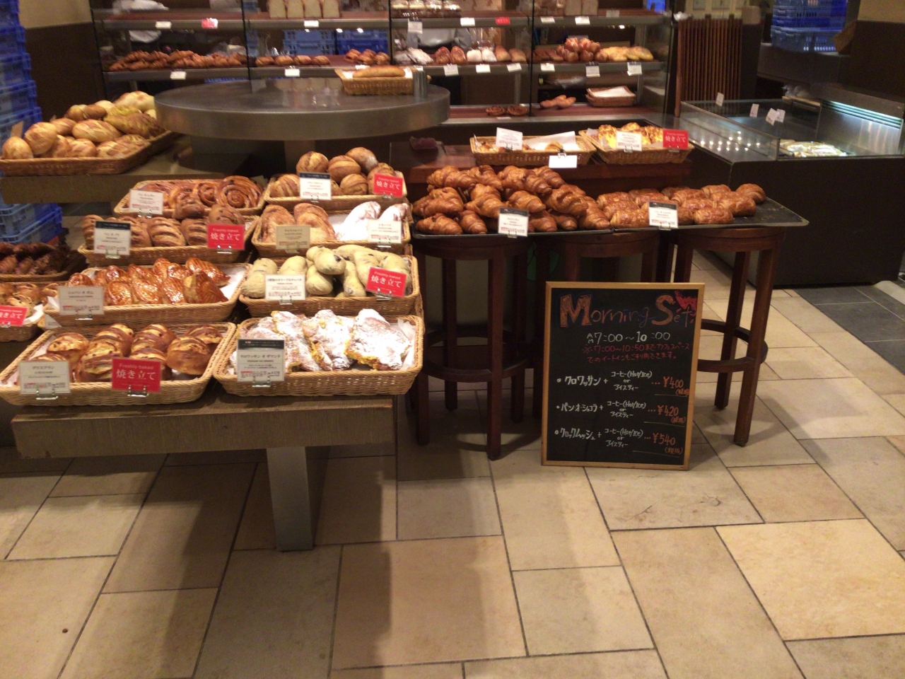 東京駅から新幹線に乗り出張する前にモーニングに立ち寄りました。朝早くから営業しているので助かります。平日限定のモーニングセットでクロワッサンとホットコーヒー400円税別を頂きました。クロワッサンは出来立てサクサク フランスへ行っている気分になれました。