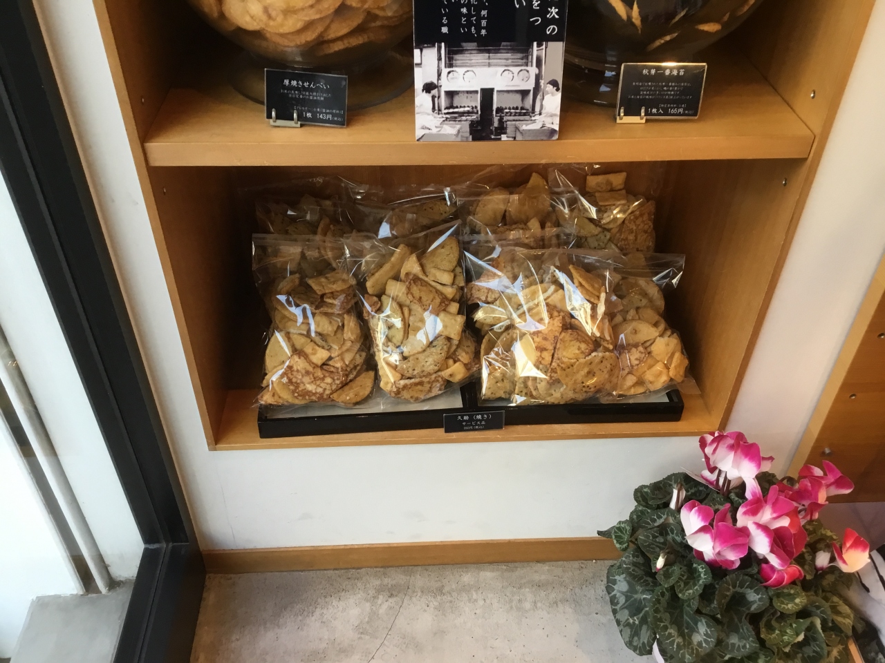 東京駅構内やスカイツリータウン・ソラマチに店舗があり、無農薬や国産の素材を使う事にこだわりがあるせんべい製造の工場直売所です。青砥駅から近いですが、狭い路地にあり場所はわかり難いです。工場直売所であるが店舗は立派です。すべてのせんべいは通常価格で販売されており、割れ煎のみお得な商品がありました。最近雑誌に紹介され人気がでている白ほおばり598円税込と割れ煎である焼き久助260円税込を購入しました。