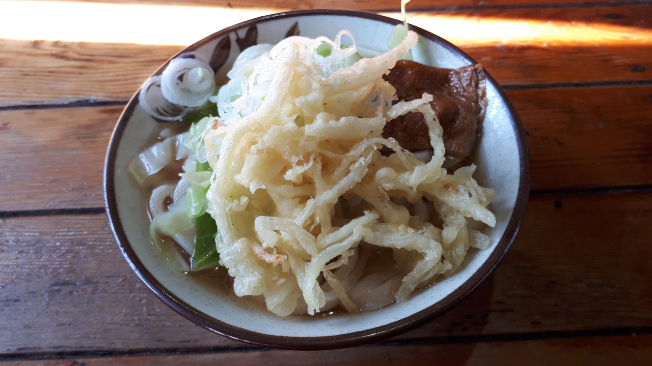 お薦めを聞いたところ、やはりうどんというので天ぷらうどん450円を