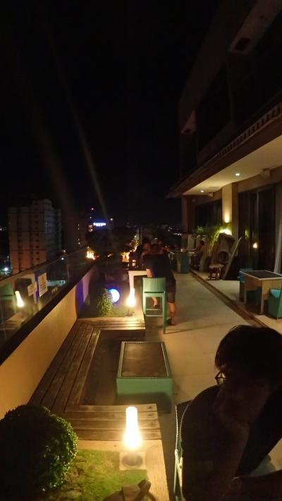 最上階にはオープンテラスのバーがあり、ビールとポテトを頂きました。夜は暑くもなく雰囲気が良いです。