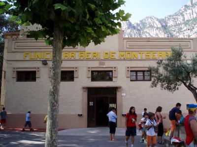 FGCのモンセラット・アエリを降り、フニクラに乗り換える白い駅舎です。駅員さんが一言、