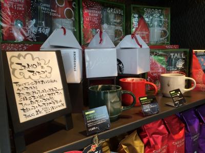 スターバックス出雲大社店。以前、訪れた際にも思いましたが、スタッフの方の接客がとても良く、素晴らしいです。1階の店作りは他の店舗と同じ感じですが、2階は独特な雰囲気。まず、スターバックスの照明は暗いイメージがありますが、出雲大社店は明るく、天井や壁も白っぽいイメージで、清々しさがあります。それから、勾玉を模した大きなテーブルがあったり、店独自の趣向が色々あります。隣の店舗と2階で繋がっている所も珍しいです。出雲大社店には限定のマグカップがあり、職人さんの手作りなので一点一点薬剤の具合が異なります。マグカップは箱入りで販売され、購入前に中を見る事はできません。どんなマグカップか購入しないとわかりませんが、それも『ご縁』。昨年、白・青・赤の3色で販売がスタートし、青が完売。今月から『緑』の新色が加わったそうです。出雲大社へ参拝されたあと、コーヒーブレイクにオススメの場所です。