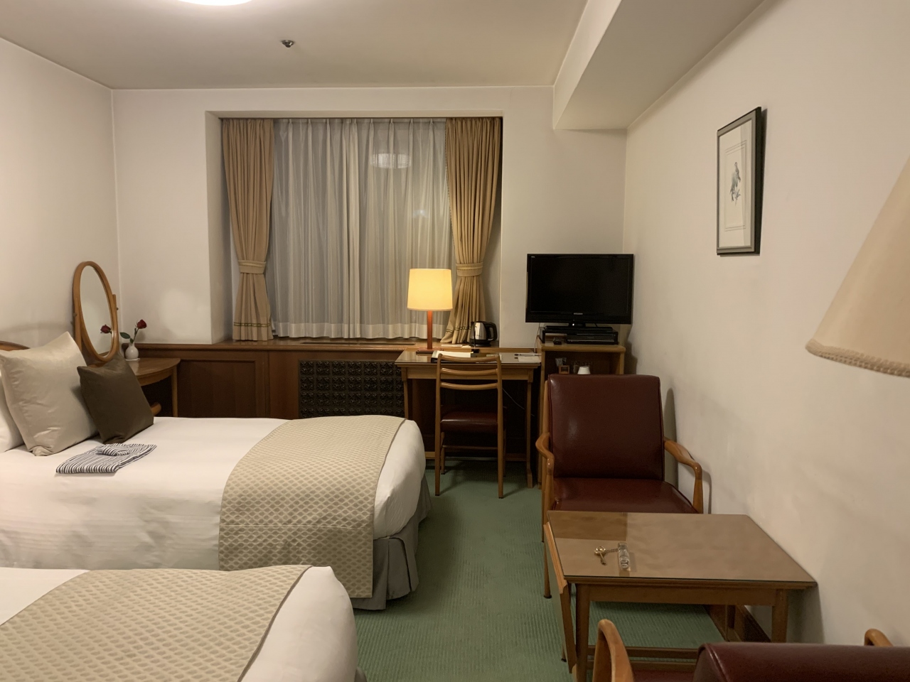 文豪が愛したという山の上ホテル。室内はこれまで泊まったホテルよりもぐんと狭いが、クラシックな館内はとても素敵。どこまで狭さが許容できるかがポイントだと思う。