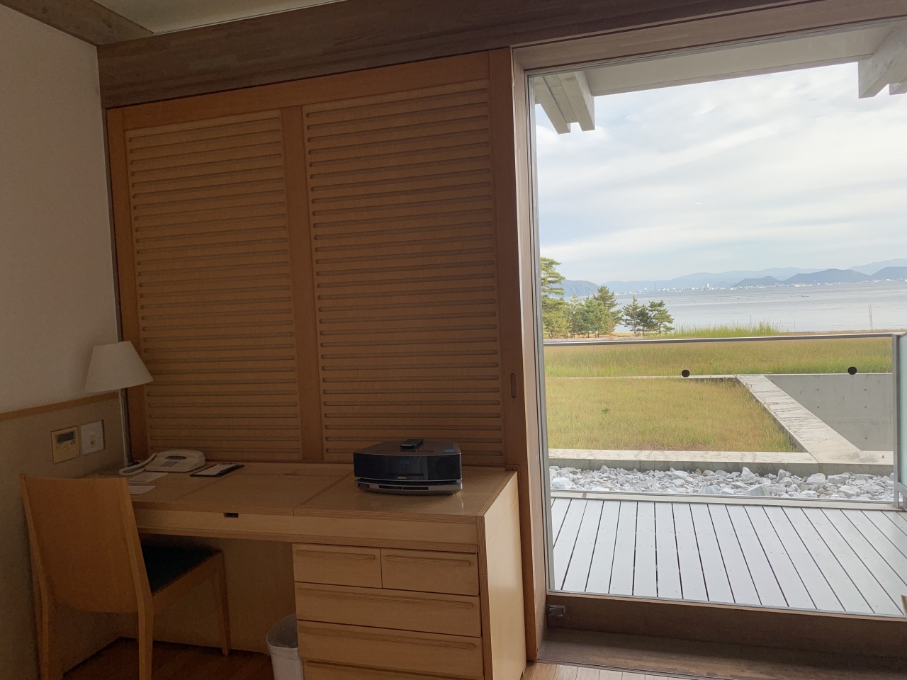 安藤忠雄には珍しい木造建築で、数日滞在して過ごすのがふさわしいようなホテルでした。