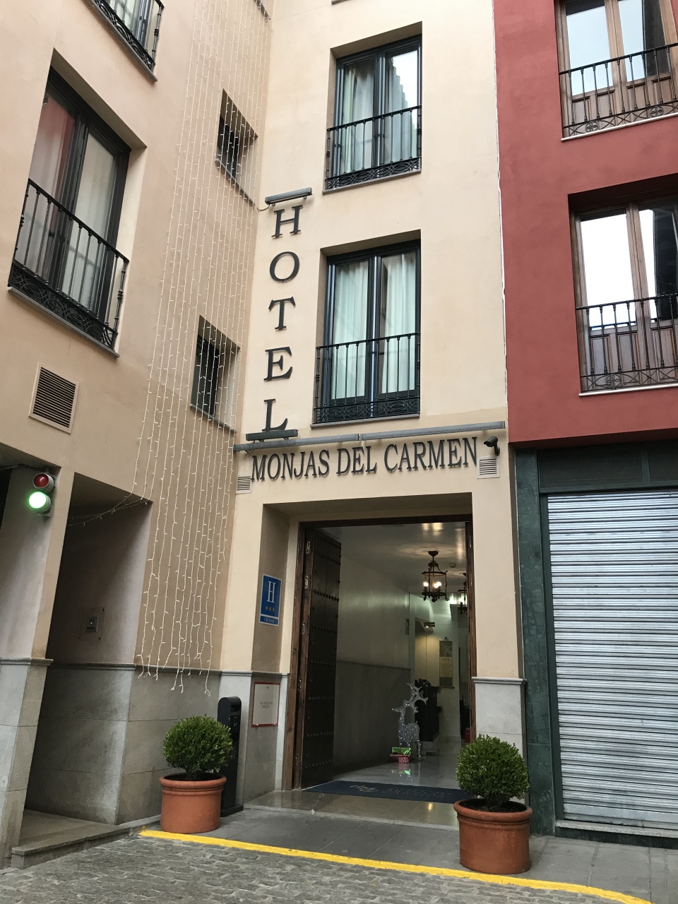 ヌエバ広場から信号を渡って、突き当りにあるホテル。