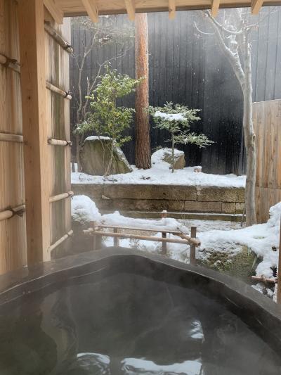 露天風呂のある部屋でしたが、冬のため凍結防止でシャワーは使えなかったものの、いつまででもつかっていたいいいお湯。