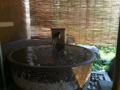 神橋の傍にありながら静かな丘の上にあり日本旅館のイメージ満載です。お風呂はオープンエアの半露天の雰囲気です。食事処での夕食はゆったりとした流れで気がつけば2時間コースでした。事前にいろいろオプションもあり自分たちに合わせた食事を設定できます。