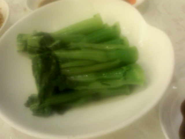 定番の蒸籠蒸し(シュウマイ、餃子??)は期待通りでしたが、青菜の炒め物(湯で物?)が珍しい感じで美味しかったです(日本の菜の花のでかいやつ??)。