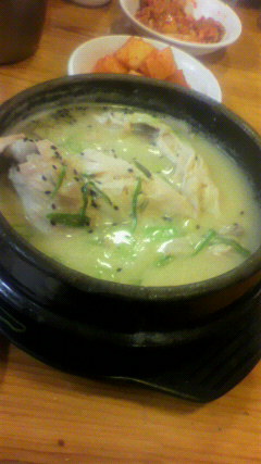 日本人向きの参鶏湯です。普通、参鶏湯は味が薄くて塩や胡椒を入れますが、ここのスープはいわゆる白湯スープで味付け済み!OKです。