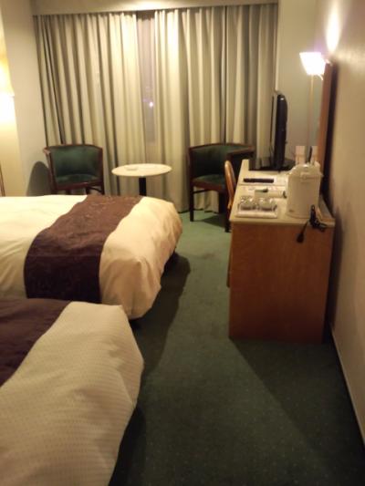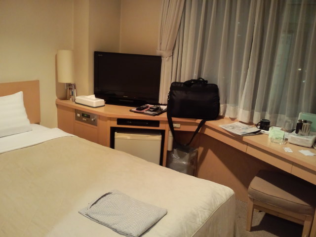 部屋は依然も泊まったことのある、スタンダードなツインです。向きは尼崎方向でしたので眼下には工場が見えてました。 観光だったらちょっとガッカリしますがビジネスなのでよしとします。