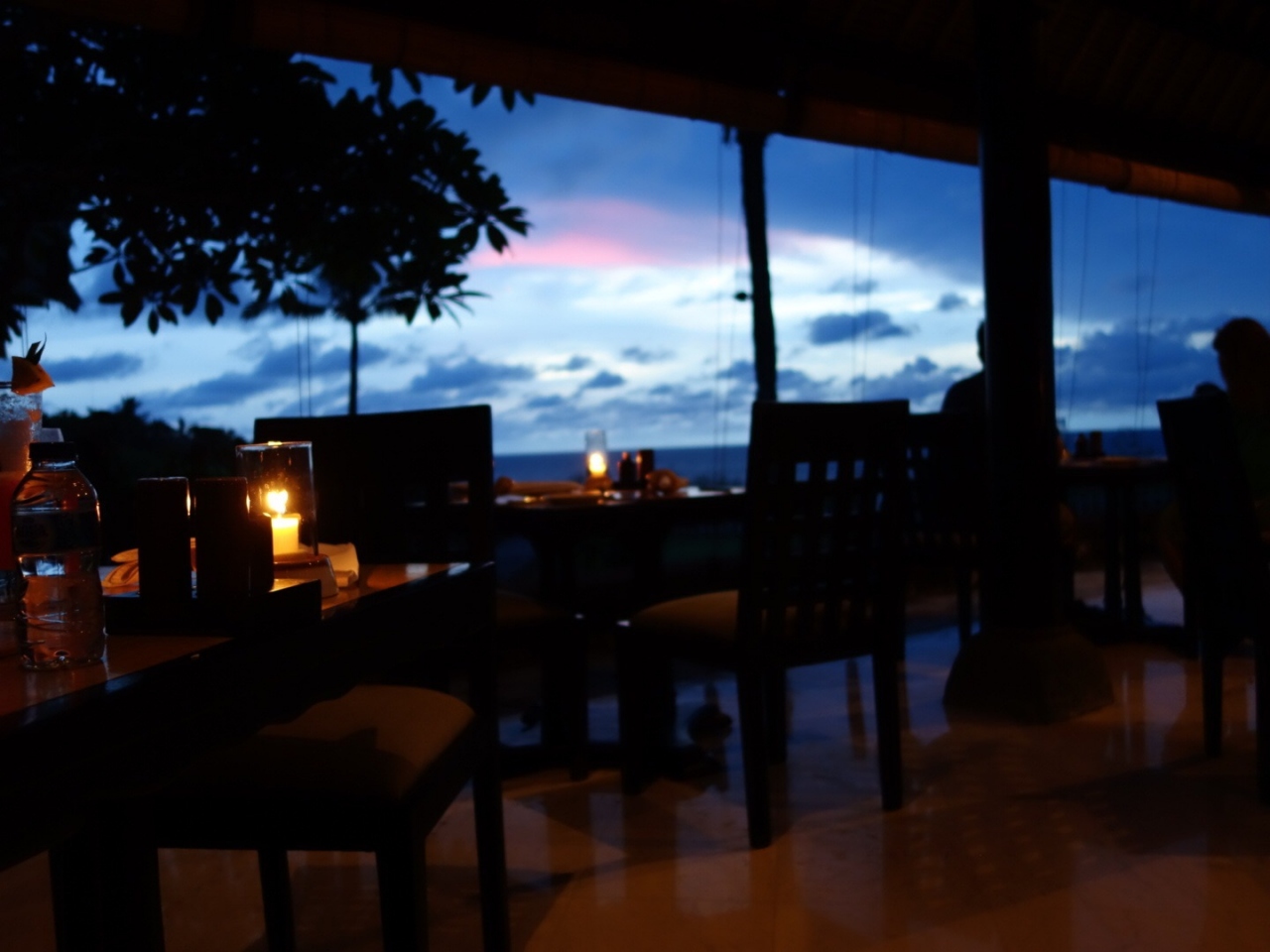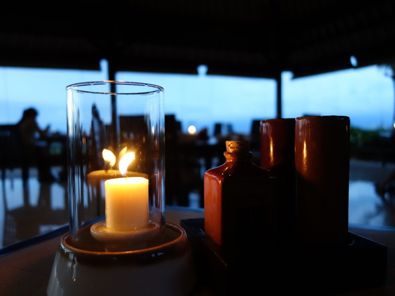 ディナーで利用しました。 オープンエアの気持ちいいレストランですが夕陽がよく見える海側の席は予約で埋まっていました。 料理も美味しく、雰囲気も良いレストランなのですが陽が落ちたとたんに虫がいっぱい飛んできて気持ち良く食事の出来る状態でなくなってしまいました。ディナーで行くなら陽が落ちる前に食べ終わり、デザートとコーヒーを楽しみながら夕陽を楽しむくらいのタイミングがいいかも。 同じアヤナ内でもロックバーは陽が落ちてからも虫は飛んでこないのに何故?って感じでした。