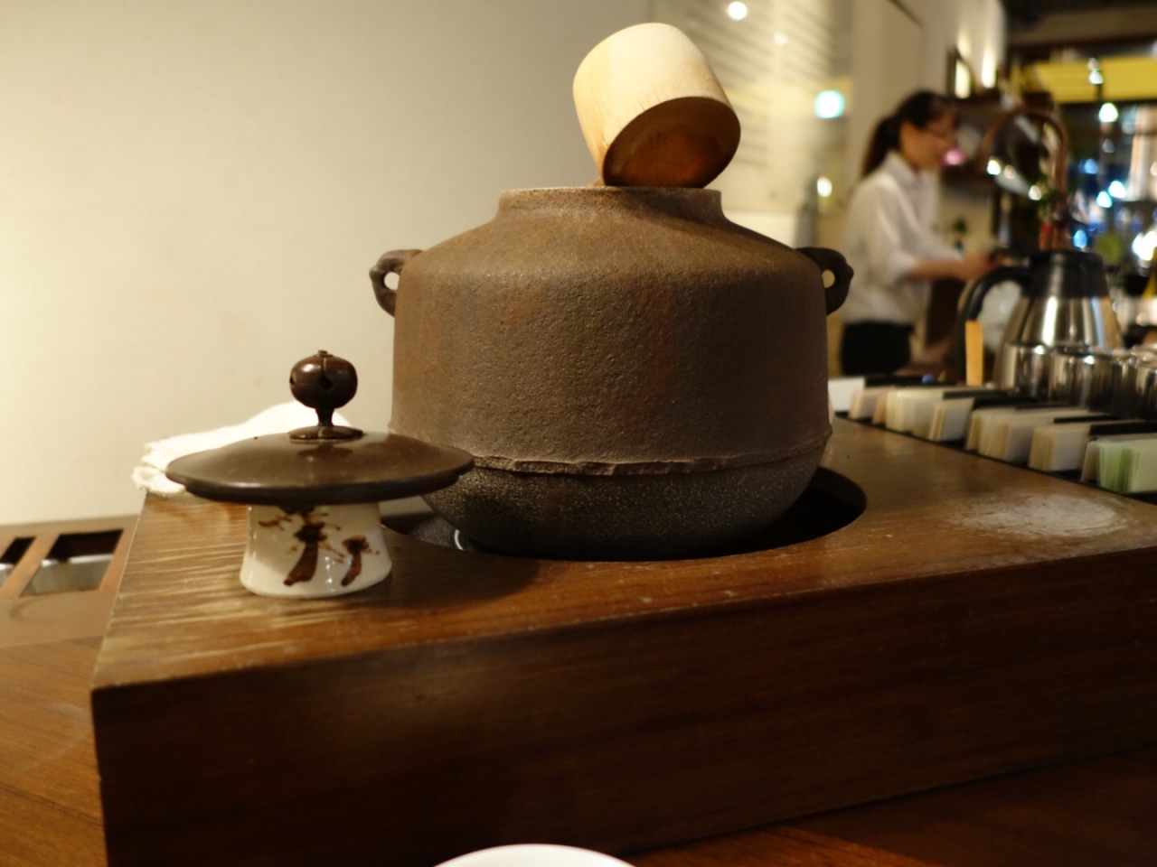 - 店舗デザイン的にはカフェだけどカウンターには茶器が置いてたり、オープンキッチンには大かまどが並んでたり和カフェ演出がいい。