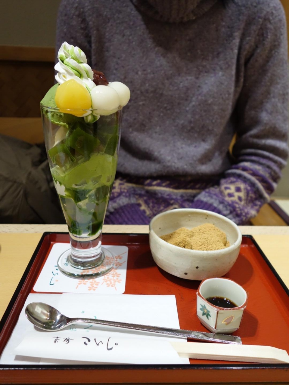 抹茶パフェとか抹茶スイーツは辻利とか中村藤吉が王道でこの二店はいつもすごい行列で時間のない観光客にはなかなかハードルが高いですが、祇園小石はあまり待たずに食べれると思います、年末に行った時は待ち時間なしでした。 辻利一本に命掛けてる人は別ですがあちこち効率的に行きたい人には祇園小石もオススメです。