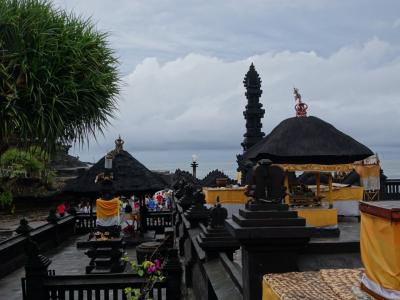 JTBの帰国日プランでタナロット寺院→スミニャックのホテルでのディナーってコースで行きましたが12月初めだったので夕陽は見れずでした。 リンバ ジンバラン バリに宿泊していたので先ずはデパンサールの渋滞に巻き込まれ、レギャン、スミニャックあたりは裏路地を走ってる感じでしたがとにかくジンバランに泊まっている人には渋滞もあり遠すぎて帰国日プラン以外で行く事はオススメしません。 帰国日プランで行くにしても時間的な自由度ご低いので夕陽をゆっくり見たい人にはオススメでないかも。 とは言えこんな絶景の寺院はあまりないので、寺院を見て回るのが好きな人は満足度は高いかもしれません。 寺院のなるべく近くまで行きたい人は濡れてもいいサンダルで行く事をオススメします。