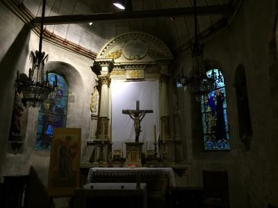 モンサンミッシェル島内でサンセットが綺麗に見える所を探し歩いてたら迷い込むように、導かれるように入ってしまいました。 サンセット近い時間だったので日帰りツアーの人はいない時間だったからかもしれないけど、自分達以外にはあと1組しかいませんでした。