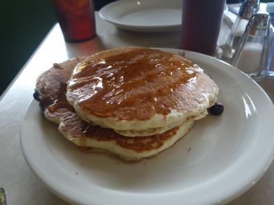 パンケーキを食べましたがエッグスンシングスよりはちょっと厚めでフワフワで美味しいかったです。でもジュースは缶ジュースでちょっと残念な感じ。