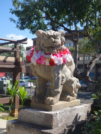 狛犬がレイをかけていたり(日本でコレやったら絶対怒られそう)