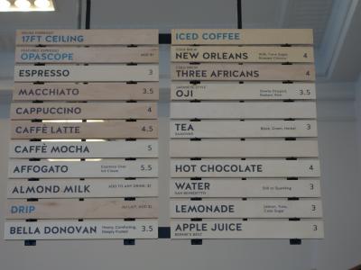 日本でもすっかりお馴染みのブルーボトル、サンフランシスコに行ったらやっぱり行っておかないとって感じです。日本にも上陸しているので既に味も皆さんご存知だと思いますがエスプレッソ系ドリンクも美味しいし、ハンドドリップも美味しいですがハンドドリップのコーヒーは選択肢が少なく日本で飲んだ時も、今回のサンフランシスコの店も、酸味と苦味のバランスがよい感じのコーヒーだったので酸味が駄目な人は満足度低いかもしれないです。カフェモカは文句なしの旨さでした。
