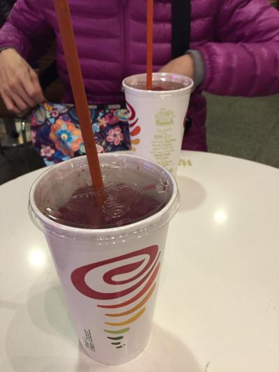 言わずと知れたスムージー屋さん、ハワイとかで行った事のある人多いんじゃないでしょうか。自分達はウエストフィールドの地下の店に三回行きました。どうしても肉が多くなるのでココでビタミン補給(笑) そして買い物に疲れたらジャンバジュース飲みながら休憩って感じです。