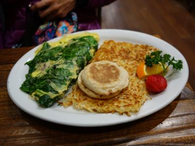 ココはとにかくハッシュブラウンがすごく美味しい~、エッグベネディクトやオムレツが色んな種類がありどれを食べようか迷う~。
