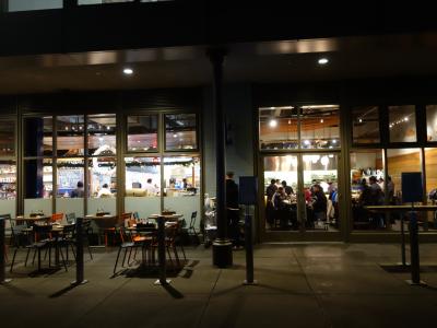 フェリービルディングの裏と言うか海側には本当に船着場があって朝は船が着くといっぱい人が降りてくるし、夜は船着場にいっぱいの人が歩いて行きます(船を見て自転車で駆け込んで行く人もいたな)。このマーケットには色んな店が入っているけどそんな環境だから通勤客御用達かなって感じです。朝はプルーボトルとかピーツコーヒーなどのコーヒーショップでコーヒー買って行く人多いみたいだし、夜はお酒とお喋りを楽しむ人が多そうです。海側にはベンチが並んでいてベイブリッジを眺めながら休憩するのも良いですよ。