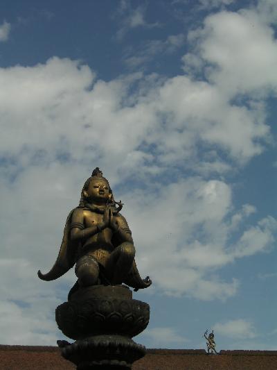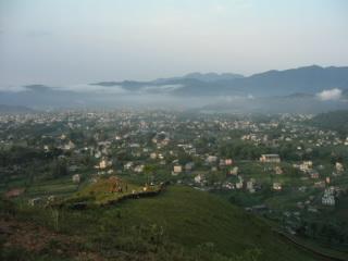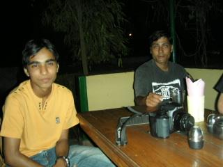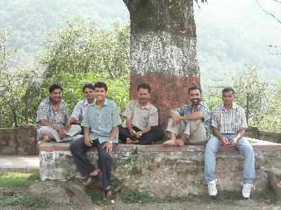 オーナーと彼の友人と早朝散歩。ネパールの朝は早い。ラジオを片手に散歩す...