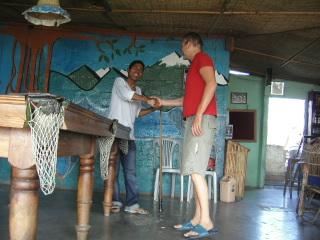 同じく長期滞在していたスペイン人のロベルトとビリヤード。名前を忘れてし...