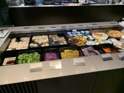 食事のメニューはビュッフェスタイルでカレーや麺類はその都度オーダーすると作ってくれます。ビールサーバーやアルコールの種類も充実しています。