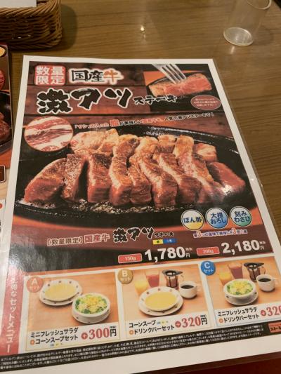 数量限定の国産牛の激アツステーキ200g(2,180円+税)を注文しました。